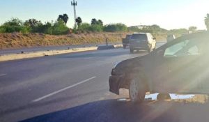 Otro accidente vial se registro sobre la carretera de Reynosa a Río Bravo, a un costado de la colonia Voluntad y Trabajo, donde participaran un automóvil tipo Nissan, color negro, modelo reciente con placas de Tamaulipas que termino embancado sobre el camellón central, de oriente a poniente rumbo a la carretera a Río Bravo.