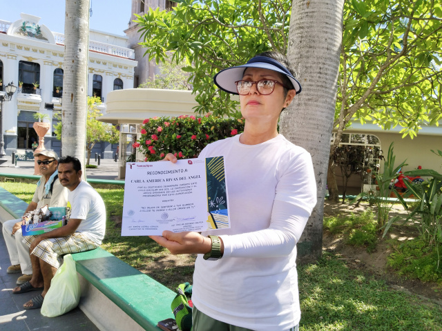 “Amo mi profesión, y aquí tengo mi documento que me extiende mi supervisor de mi desempeño laboral, yo he participado en talleres y mi jefe Ramón Osorio Vidales me acaba de solicitar que debo de hacer otra actividad, pero con niños para ser grabado y mandado a Victoria, y no pueden ayudarme…y entre mi jefe inmediato y yo hemos comprado los materiales para participar en actividades, en donde está la reciprocidad, el apoyo laboral”.