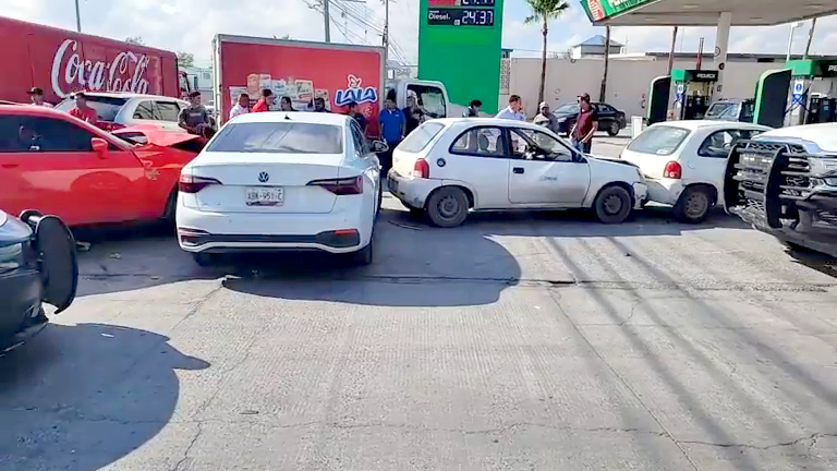 Finalmente al lugar acudieron elementos del área de Peritajes de Tránsito y Vialidad Municipal, quienes tomaron conocimiento de ese aparatoso accidente vial para deslindar responsabilidades los daños fueron materiales en todas las unidades, y una unidad médica auxilio a quienes resultaron lesionados no de gravedad, y dejaron caos vehicular.