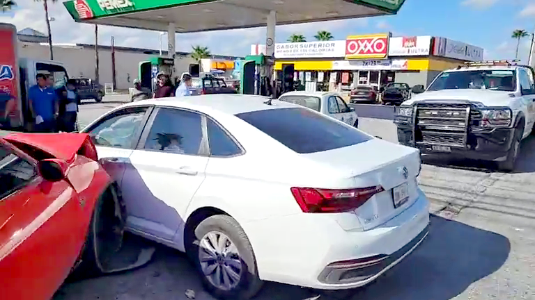 Reynosa, Tamaulipas.-Aparatoso accidente vial se registró en una concurrida avenida, donde se impactaron dos unidades, y donde dejaron como saldo daños materiales, así como personas lesionadas, y caos vehicular.
