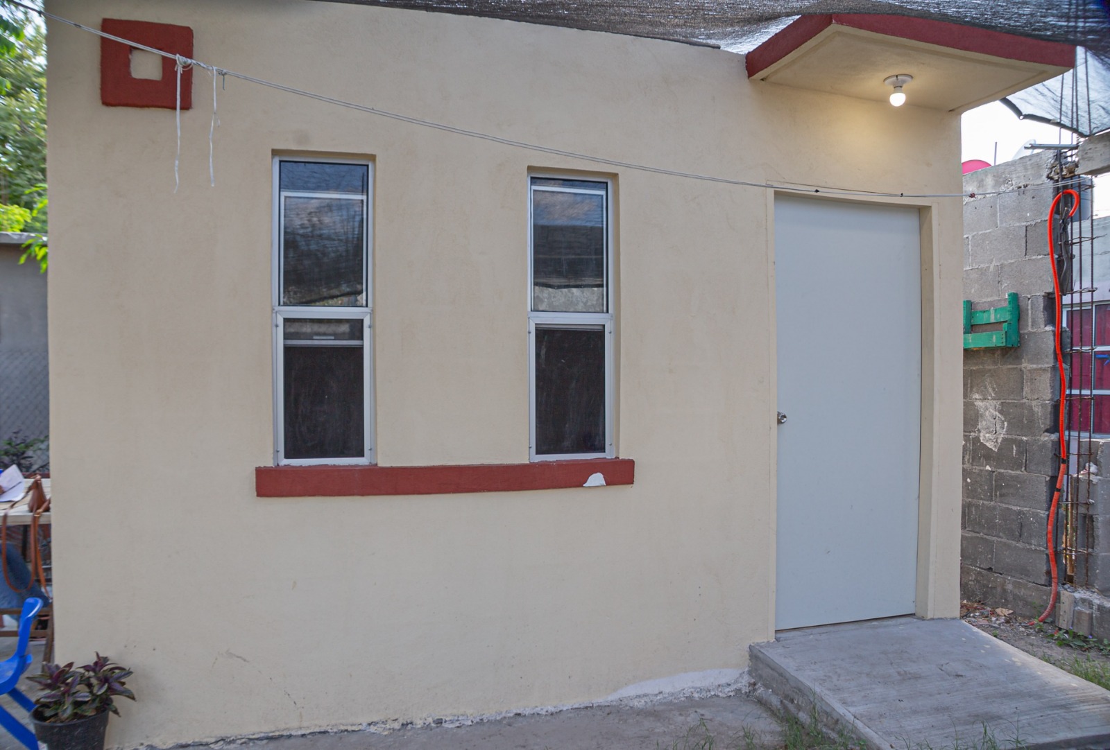 Las especificaciones técnicas de los cuatros dormitorios son: construcción de 4X4, a base de losa de cimentación flotante, muro de block, losa de concreto, aplicación de uniblock en muros interiores y exteriores, aplicación de pintura e impermeabilizante, así como instalación eléctrica y cancelería consistente en dos ventanas y una puerta.