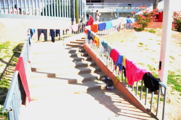 Así vive este grupo multicultural de migrantes, hambrientos, sedientos y entre montones de ropa tendida en cualquier parte, luego de ser lavada con el líquido que brota de una sola llave pública instalada para ellos por las autoridades municipales.