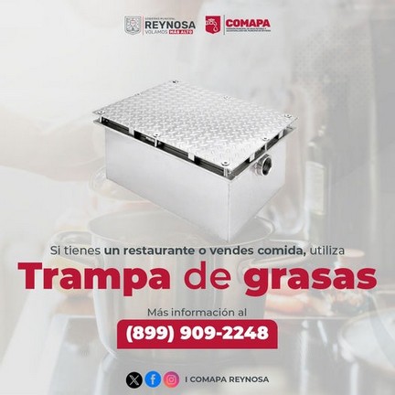 La Comisión Municipal de Agua Potable y Alcantarillado de Reynosa hace un llamado a restaurantes y pequeños negocios de alimentos de la localidad a utilizar trampa de grasas debajo de sus fregaderos, a fin de evitar que estos residuos contaminen las redes sanitarias.