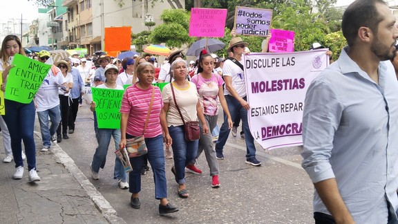 Tampico, Tamaulipas-Tras señalar que no se trata del presupuesto ni de fideicomisos, que no andan tras el hueso, sino que exigen autonomía, mil 200 ciudadanos y trabajadores del Poder Judicial marcharon hoy en Tampico, al grito de que es el único poder que no se vende.