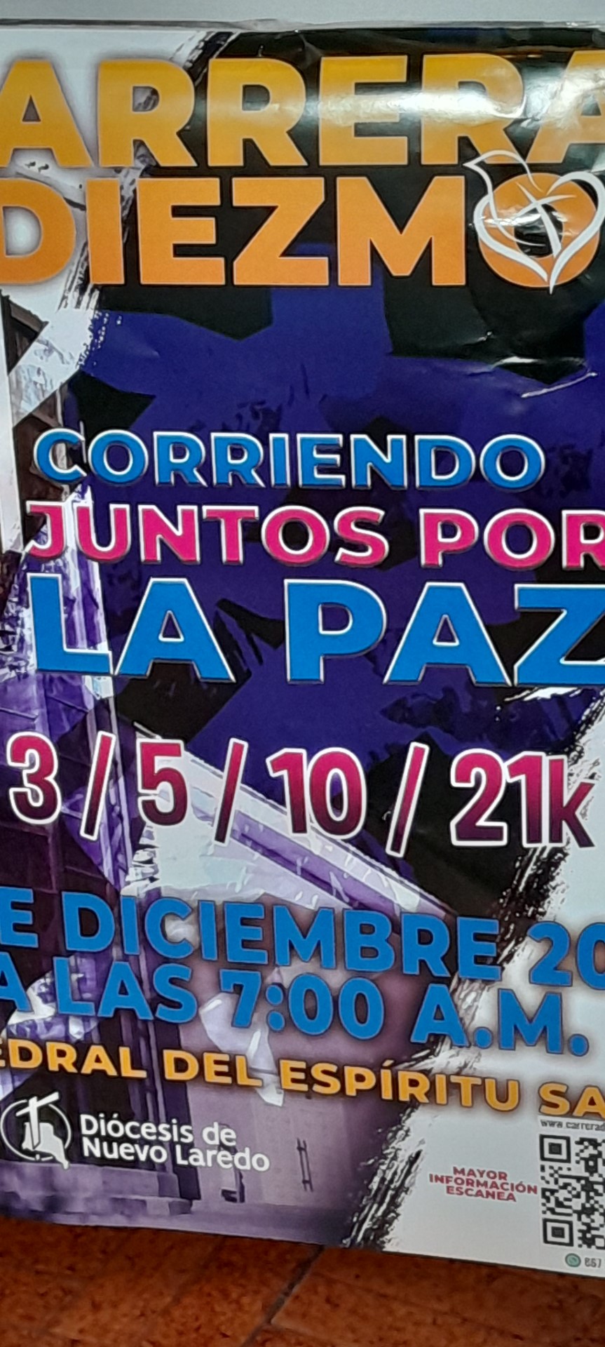 Para el 3 de diciembre se llevará a cabo la Carrera del Diezmo ‘Corriendo Juntos por la Paz’ en las categorías 3, 5, 10 y 21 K, y para ello la información fue ofrecida en una conferencia de prensa en las oficinas del Obispado, en donde el administrador diocesano, Enrique Sánchez Martínez, anunció se pronta salida de la Diócesis, que será el próximo lunes, para cumplir con su misión pastoral en la Diócesis de Mexicali, en Baja California Norte.