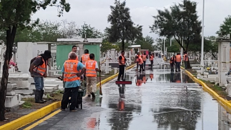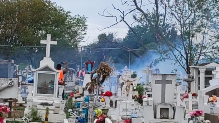 Señaló que personal de Servicios Públicos Primarios ha realizado la limpieza en los panteones que son un promedio de cinco de ellos diseminados en la ciudad, y donde han recogido la basura y cortado la yerba para que las familias que acudan a visitar a sus deudos lo hagan sanamente.