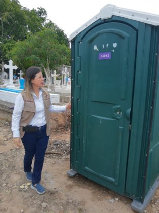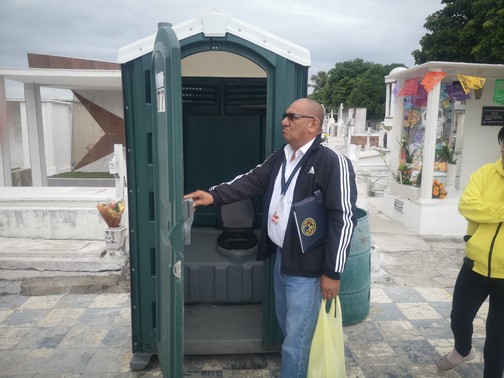Manifestó que esto no se había hecho, que fue una recomendación, pues las personas no están mucho tiempo en los panteones, van un rato hacen su labor y si tienen alguna necesidad fisiológica se retiran, pero ahí hay una opción para apoyarlos para cualquier emergencia de ese tipo.