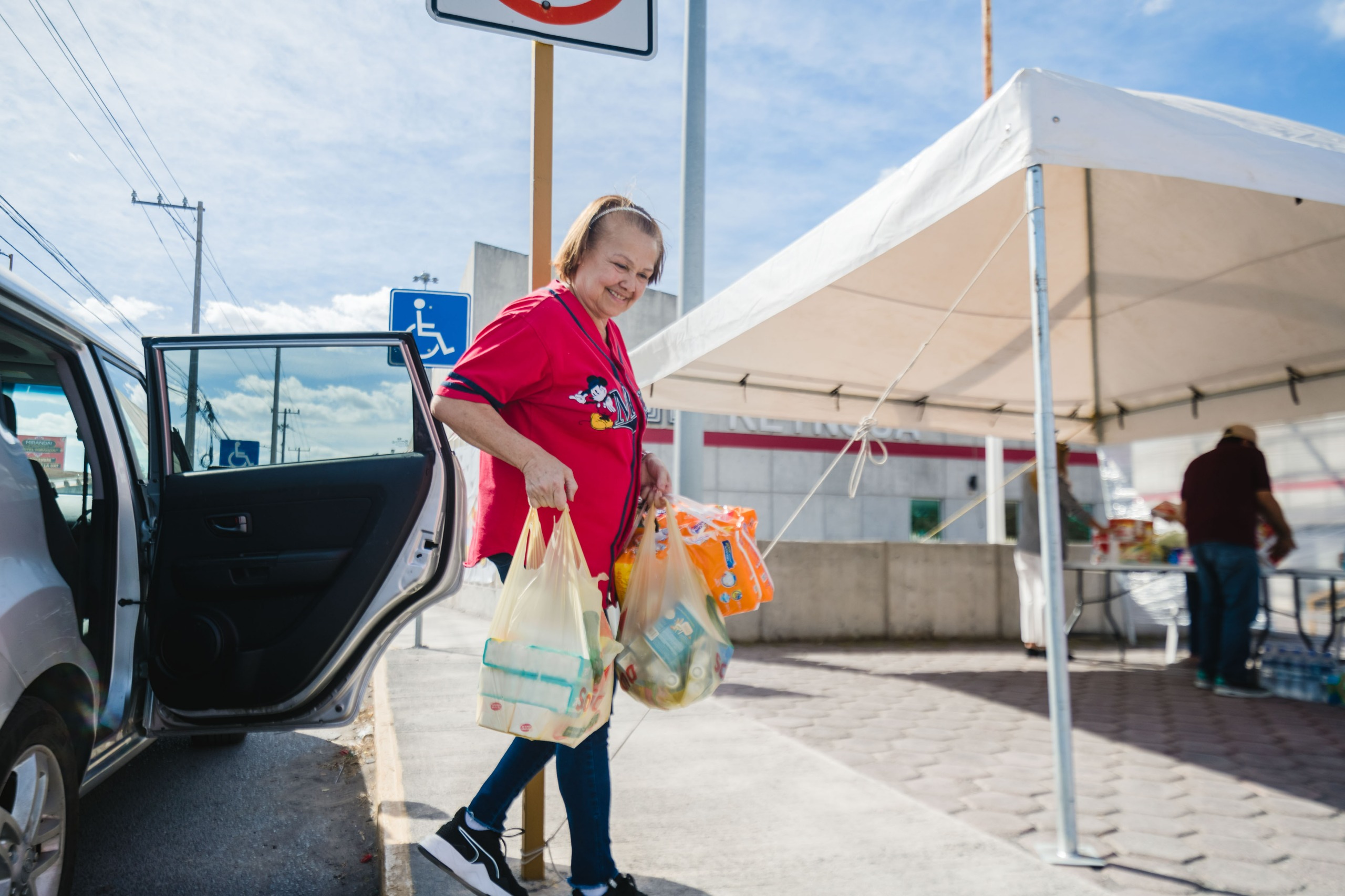 .-Con la donación de víveres