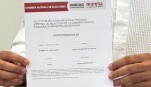 Un documento con el Folio 120938, confirma que el actual presidente municipal es ya uno de los prospectos del Movimiento Regeneración Nacional para participar en la consulta que habrá de otorgarle la reelección al cargo que actualmente ocupa.