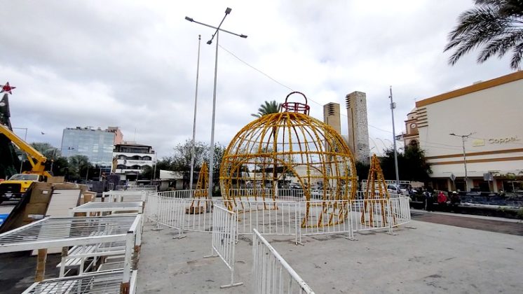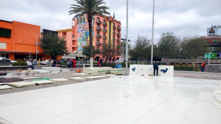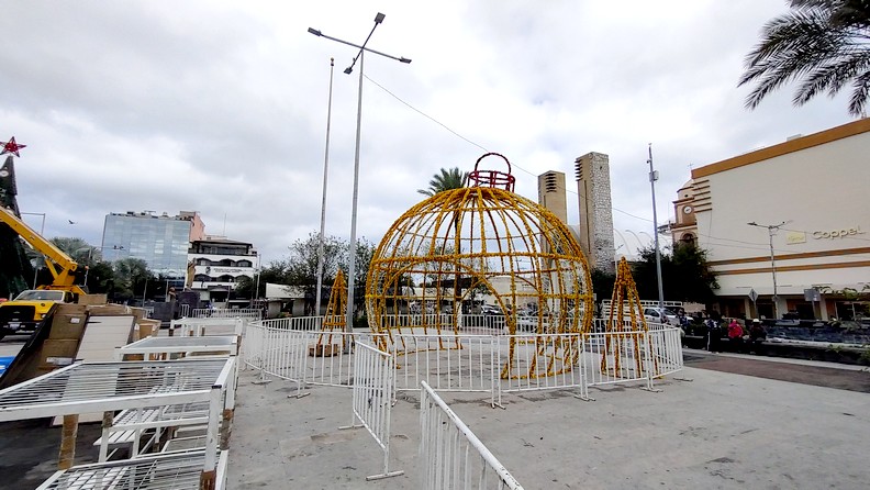 Poco a poco los habitantes de la ciudad acuden a tomar fotografías, y por igual se está instalando lo que será la pista de hielo para diversión de los reynosenses.
