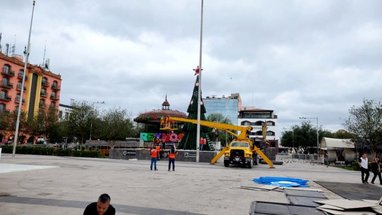 Reynosa, Tamaulipas.-Poco a poco el espíritu navideño empieza a invadir a los habitantes de esta ciudad, ya que se dio el inicio de la instalación del pinito de Navidad, así como la pista de hielo en donde se realizaran diversas actividades ante la llegada de las fechas decembrinas.