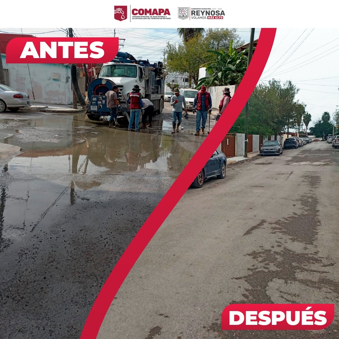 En atención a reportes ciudadanos y siguiendo las indicaciones del Presidente Municipal, Carlos Peña Ortiz, la Comisión Municipal de Agua Potable y Alcantarillado de Reynosa llevó a cabo maniobras de limpieza de drenaje sanitario en la colonia La Cañada.