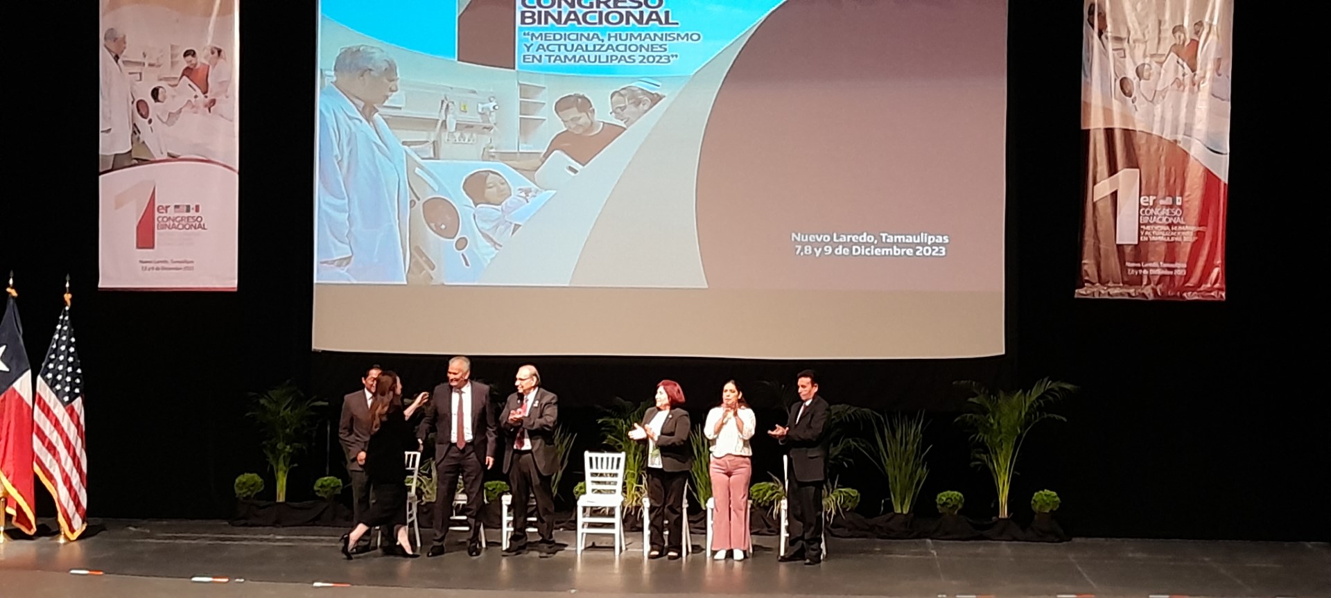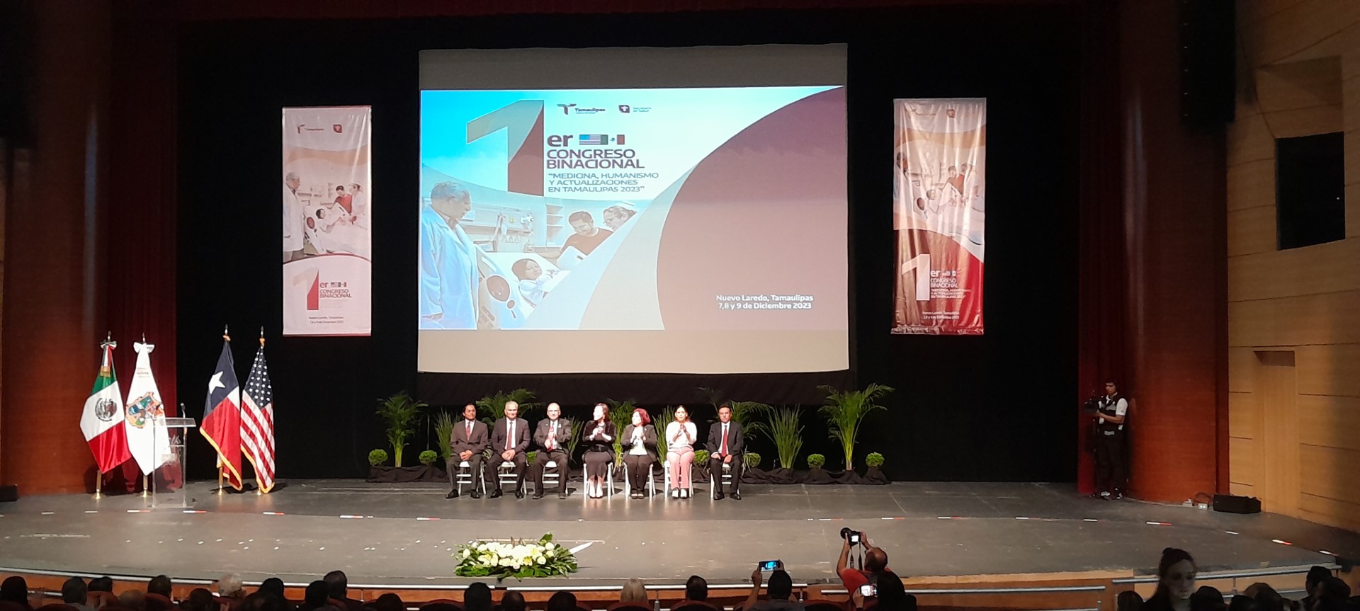 Nuevo Laredo, Tamaulipas.-El Primer Congreso Binacional de Medicina, en el que participan médicos de México y de Estados Unidos, principalmente de las dos ciudades fronterizas, fue inaugurado la mañana de este jueves por la alcaldesa Carmen Lilia Canturosas en el teatro principal del Centro Cultural que fue abarrotado por más de mil asistentes.