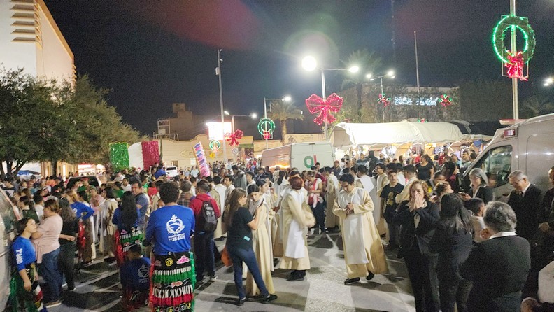 Con música, cohetes, y la danza de los tradicionales Matachines, así como la figura de la Virgen de Guadalupe, pernoctó en el exterior de la iglesia de Nuestra Señora de Guadalupe, donde estarán a la espera decenas de procesiones con sus peregrinos para celebrar y cantar las mañanitas para amanecer este día 12 de Diciembre, que es fecha donde se festeja a la Virgen de Guadalupe.