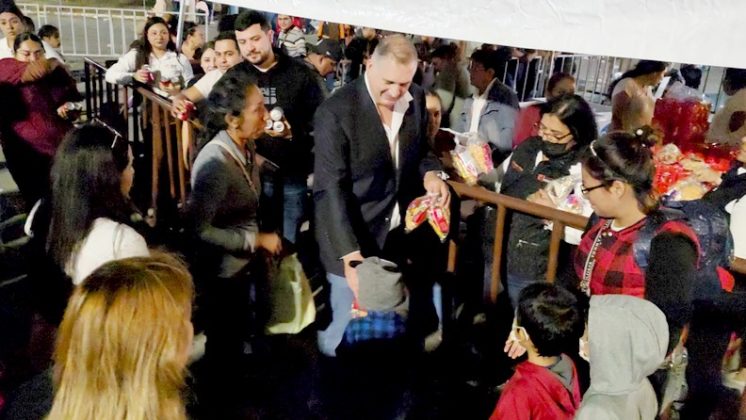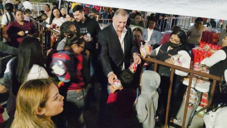 Luis Carlos Peña Garza, Presidente del DIF Reynosa, procedió a entregar a los reyes de la casa bolsitas con dulces y regalos, además les deseo mucha felicidad en esta próxima Navidad y año nuevo que sus hogares se colmen de bendiciones al igual que sus padres que eran acompañados.