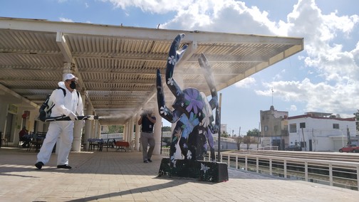 El funcionario informó que también desinfectaron el mercado “Manuel Ávila Camacho”, los servicios sanitarios de ese Centro de abastos, así como la Jaiba emblemática en el paseo Canal de la Cortadura, en donde tradicionalmente los turistas se toman la foto.