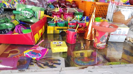 “Como este en 5 pesos que son cuetes de luz para los niños, tenemos diferentes precios porque sabemos que no hay mucho de dinero y tenemos que dar la economía de la gente y por eso estamos manejando 5, 10,15, 30 y 45 pesos; como estos están en 30 que son las brujitas para los niños”.