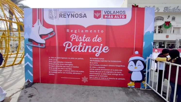 El gobierno de Reynosa que encabeza el alcalde Carlos Peña Ortiz, tuvo a bien gestionar para la instalación de una pista de patinaje desde comienzo de las fechas decembrinas, y que se prolongó hasta el día 8 de Enero del 2021 que será el día último que se tenga esa pista de diversión.
