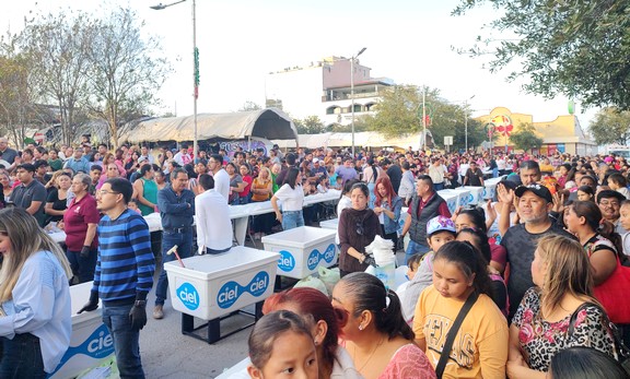 Reynosa, Tamaulipas.-Cientos de familias celebraron el día de los Santos Reyes, donde el alcalde Carlos Peña Ortiz, compartió la tradicional rosca, amenizado con música y show familiar.