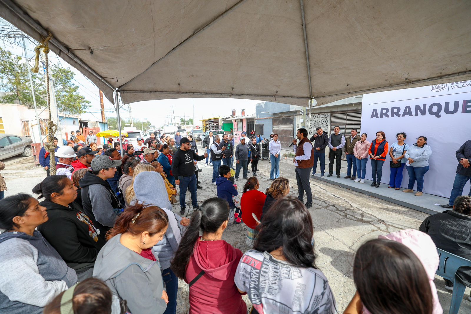 “Hoy celebramos el inicio de esta nueva pavimentación, una obra que se hace con el apoyo de Síndicos y Regidores de todos los partidos políticos; gracias por su presencia a los vecinos y a su representante la señora Imelda González”, dijo el Alcalde durante la ceremonia de arranque.