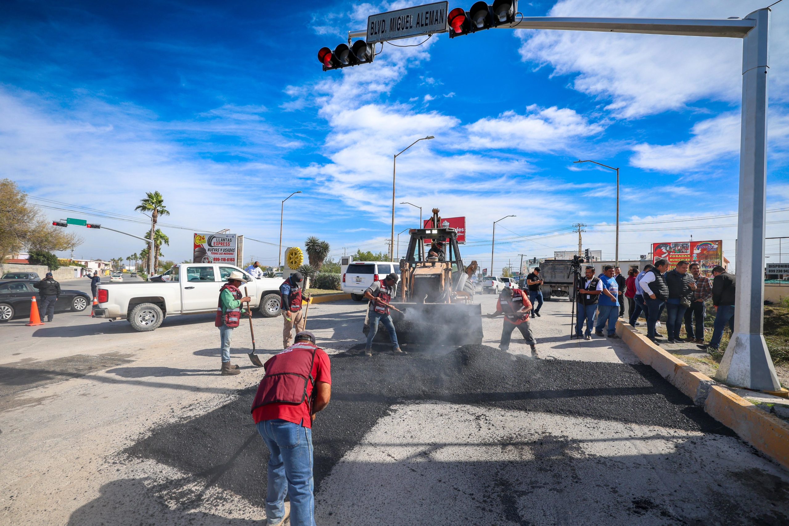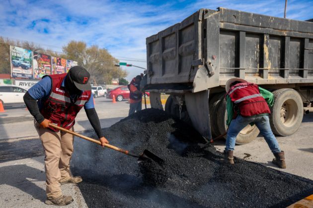 Para mejorar la circulación vial y la seguridad de automovilistas y peatones, el Alcalde Carlos Peña Ortiz dio el banderazo a una jornada de bacheo, con 12 toneladas de asfalto en el bulevar Del Maestro, en su cruce con Miguel Alemán en la colonia Loma Linda y que son parte de las 800 toneladas programadas para el mes de enero.