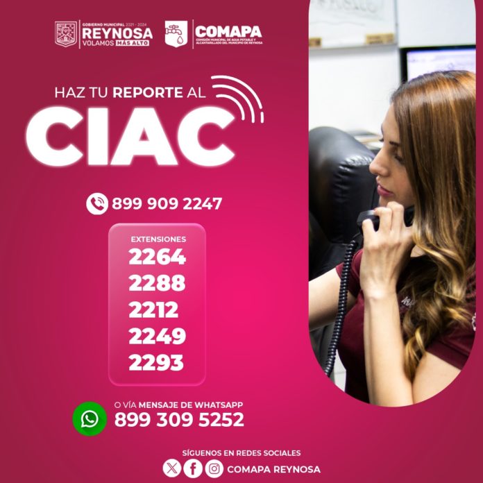 Atendiendo las indicaciones del Presidente Municipal, Carlos Peña Ortiz, la Comisión Municipal de Agua Potable y Alcantarillado de Reynosa refuerza su compromiso con la eficiencia en la atención a sus usuarios, invitándolos a realizar reportes de agua potable y drenaje sanitario, a través del Centro Integral de Atención Ciudadana.