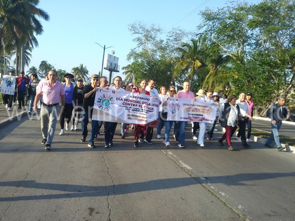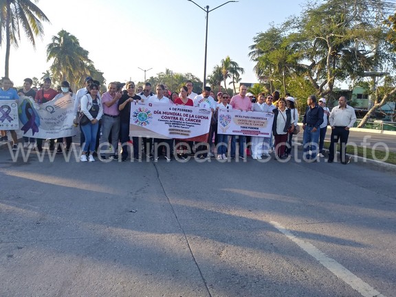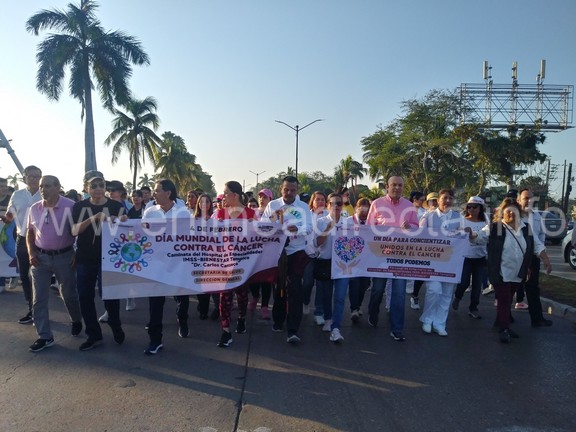 Tampico, Tamaulipas.-En el marco del Día Mundial de la lucha contra el cáncer,  que es la tercer causa de muerte en las personas en el país, hoy personal del Hospital de Especialidades IMSS-Bienestar Dr. Carlos Canseco realizó esta mañana una caminata para concientizar a la población a cambiar hábitos alimenticios y hacer ejercicio, así como detectar a tiempo síntomas de esta enfermedad para evitar el fallecimiento por este motivo.