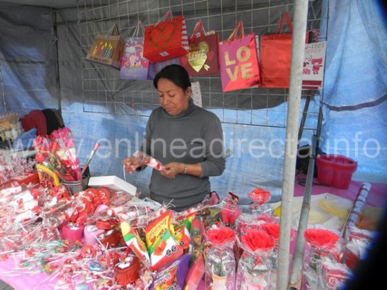 Dijo que en años anteriores las ventas eran mejores, pero confió que para mañana las ventas mejoren, de lo contrario se quedará con toda su mercancía, y añadió que tal vez se deba a que la costumbre de regalar algo el 14 de febrero se está perdiendo poco a poco.