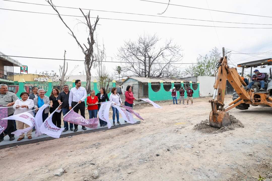 La obra consiste en la pavimentación de 722.19 metros cuadrados de concreto hidráulico en la calle Progreso entre Sol de Mayo y Rodolfo Garza Cantú y beneficiará a 257 familias de forma directa; incluye además104.63 metros lineales de red de agua potable, 104.63 metros lineales de red de drenaje sanitario.
