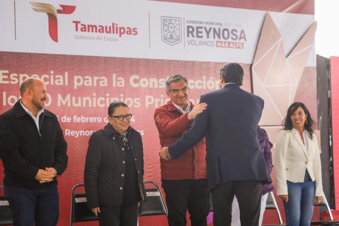 De igual forma, agradeció a Rosa Icela Rodríguez Velázquez, titular de la Secretaría de Seguridad y Protección Ciudadana, por su gran empeño en reconstruir la paz en Reynosa con más presencia de las fuerzas federales, así como de inteligencia. De la misma manera, a la maestra Martha Beatriz López López titular de la Unidad de Políticas y Estrategias para la Construcción de la Paz en las entidades federativas y al General Sergio Hernando Chávez García, Secretario de Seguridad Pública del Estado de Tamaulipas, a quien calificó como un hombre valiente.