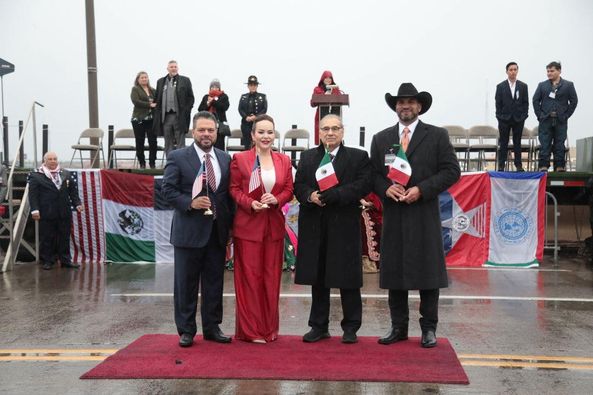 La ceremonia fue encabezada por el gobernador de Tamaulipas y Líder Binacional 2024, Américo Villarreal Anaya quien junto a su esposa la Dra. María de Villarreal, dieron el tradicional abrazo con el congresista Henry Cuellar.