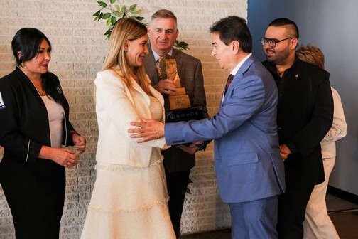 Para recibir la distinción, Maki Ortiz, fue acompañada por su esposo el Lic. Carlos Luis Peña Garza, atendiendo la invitación de la Fundación Casa Arte Francisca Martínez A. C., teniendo como recinto oficial la Payne Arena, de Hidalgo, Texas.