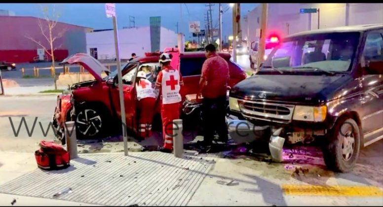 Reynosa, Tamaulipas.-Accidente vial se registró en una zona residencial de la ciudad, donde participaran dos unidades, y que el saldo final fuera de cuantiosos daños materiales, personas lesionadas, y caos vehicular.