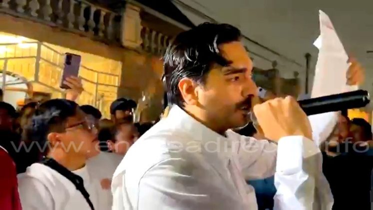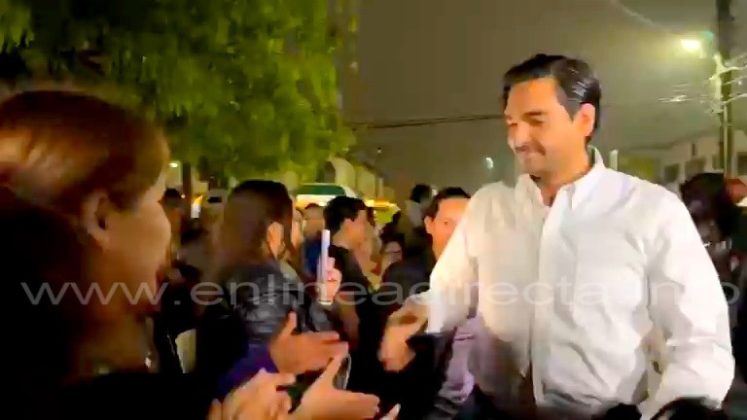 Al salir del edificio del órgano electoral el candidato de la Coalición Morena, Partido del Trabajo y Partido Verde Ecologista de México, se dirigió a los cientos de personas que afuera lo esperaban con porras, vivas, y muestras de apoyo.