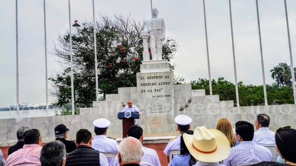 En el hemiciclo, ubicado en la laguna del Carpintero, Juan Maya Albarrán representante de la gran logia de Libres y Aceptados Masones Tamaulipas, hizo una oratoria donde destacó que el benemérito de las Américas enfrentó desde temprana edad adversidades propias de una realidad marcada por la escasez y la marginación; sin embargo lejos de permitir que tales obstáculos lo afectaran, eso definió su destino.
