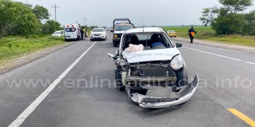 Reynosa, Tamaulipas. -Aparatoso accidente se registró en una concurrida carretera, donde el saldo final fuera de cuantiosos daños materiales en las unidades participantes, personas lesionadas, y caos vehicular.