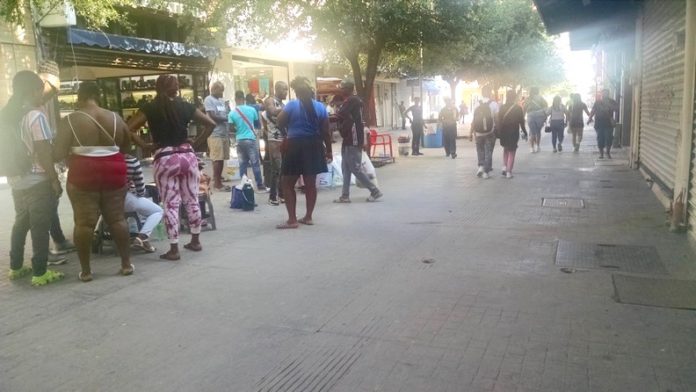 Reynosa, Tamaulipas. -Comerciantes establecidos de la calle peatonal Hidalgo esperan que prontamente por fin se logre reubicar a los haitianos que por muchos meses han estado en la zona Centro comercializando, y que consideran una competencia desleal.