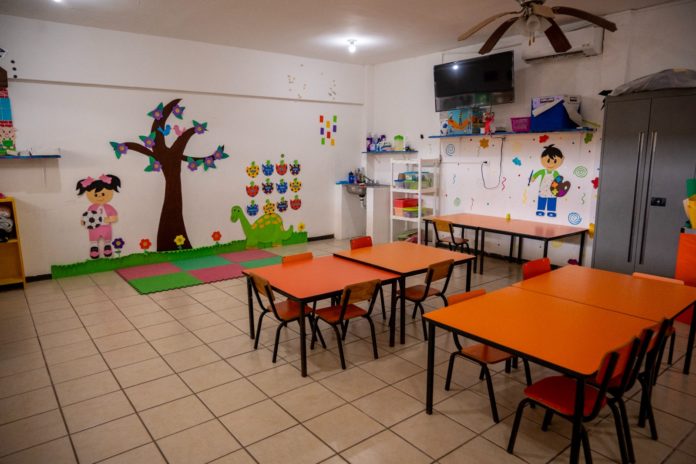 El Sistema DIF Reynosa atiende a las familias trabajadoras en la Guardería número 4 ubicada en avenida Punta Diamante s/n, en la colonia Villas de la Joya, donde los menores de edad reciben apoyo pedagógico, alimentación, servicio asistencial y atención médica.