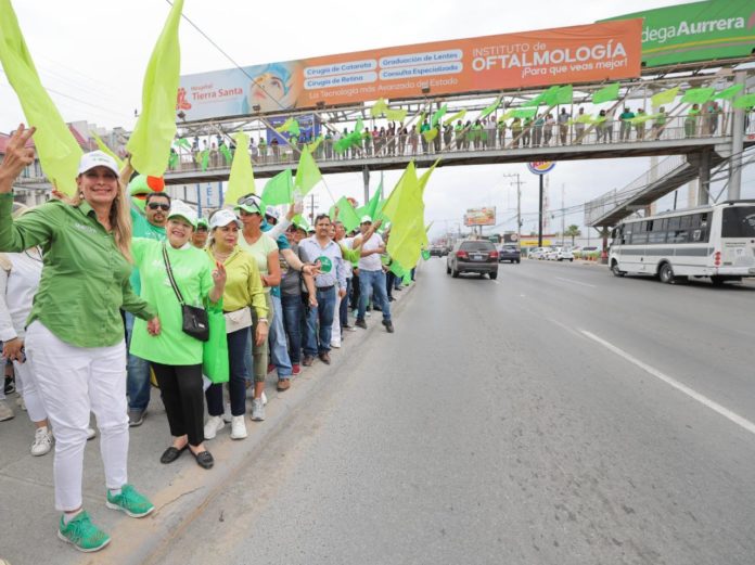 Con una tercera megabrigada de impacto, encabezada por la candidata a Senadora por el Partido Verde, Maki Esther Ortiz Domínguez, en el bulevar Hidalgo y su cruce con Praxedis Balboa se vivió una colorida fiesta que anuncia el segundo piso de la transformación del país.