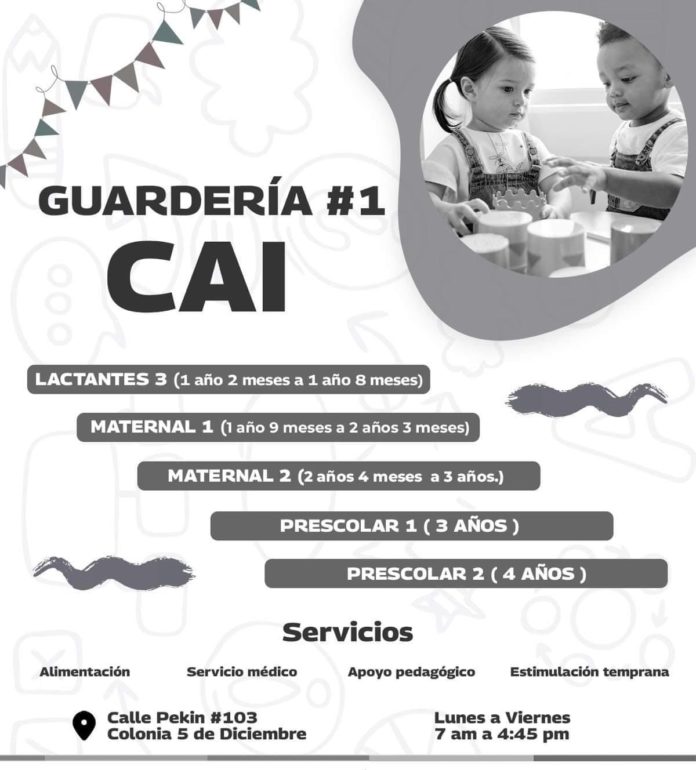 El Sistema DIF Reynosa el coordinación con el gobierno de Reynosa proporciona protección y cuidado a niños y niñas en la Guardería 1, ubicada en calle Pekín número 103, en la colonia 5 de diciembre, ofreciendo una estancia segura mientras las madres y padres trabajan.