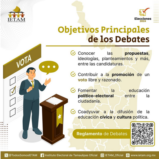 Cd. Victoria, Tamaulipas.-En el avance que lleva el proceso electoral en Tamaulipas, se da a conocer el reglamento para la organización, promoción y difusión de debates entre las candidaturas registradas a los distintos cargos de elección popular  en Tamaulipas.
