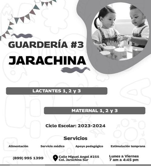 Para apoyar a familias trabajadoras, el Sistema DIF Reynosa ofrece inscripciones en la guardería 3, ubicada en calle Miguel Ángel, con número 255, en la colonia Jarachina Sur.