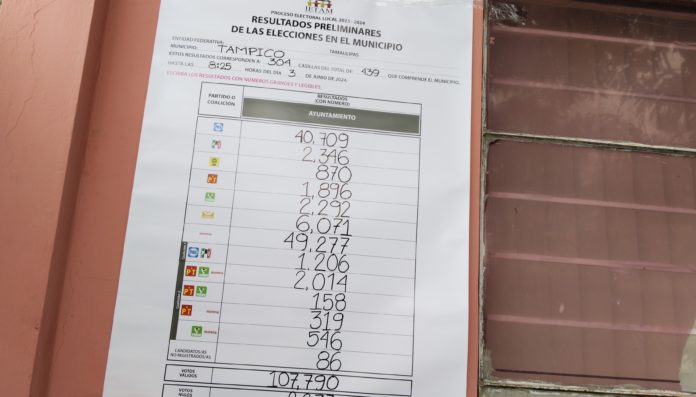 Tampico, Tamaulipas–Según el cómputo preliminar del Consejo Municipal Electora del Instituto Electoral de Tamaulipas, en el municipio de Tampico, los resultados favorecen a la candidata por la alianza “Sigamos Haciendo Historia” Mónica Villarreal Anaya, en este proceso electoral del pasado 2 de junio.