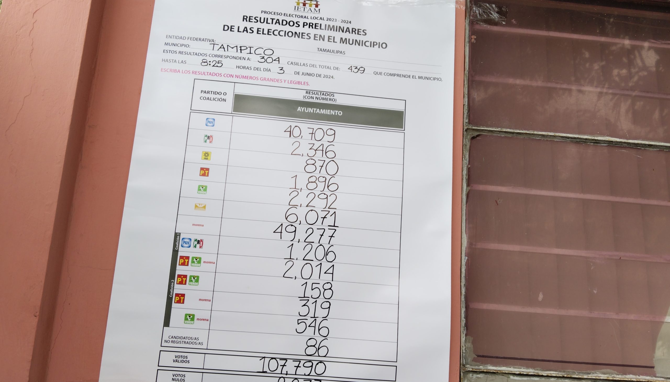 Jorge García Blanco, presidente Consejero del CME del IETAM en esta ciudad, dijo que hasta las 08:45 horas de este lunes 3 de junio se habían contabilizado 304 casillas de las 439 instaladas en el municipio de Tampico, porque sus actas se veían expuestas a las afueras de los paquetes electorales.
