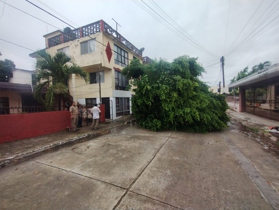 El incidente ocurrió en la calle Ignacio López Rayón, entre Lázaro Cárdenas y Ávila Camacho de la colonia Vergel, en Tampico, hasta donde llegaron elementos del heroico cuerpo de bomberos a verificar la situación ya que el árbol también derribó varios cables en ese punto.