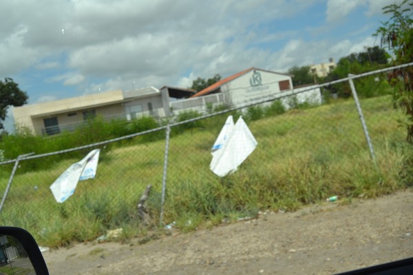Nuevo Laredo, Tamaulipas.-A las 390 toneladas diarias de basura que se generan en esta ciudad se le agregan cientos de lonas, mantas, carteles y bardas pintadas con publicidad de los diferentes candidatos que participaron en la contienda electoral del dos de junio, basura que aún permanecen en los lugares donde fueron colocados, sin que nadie se haga responsable de su retiro.