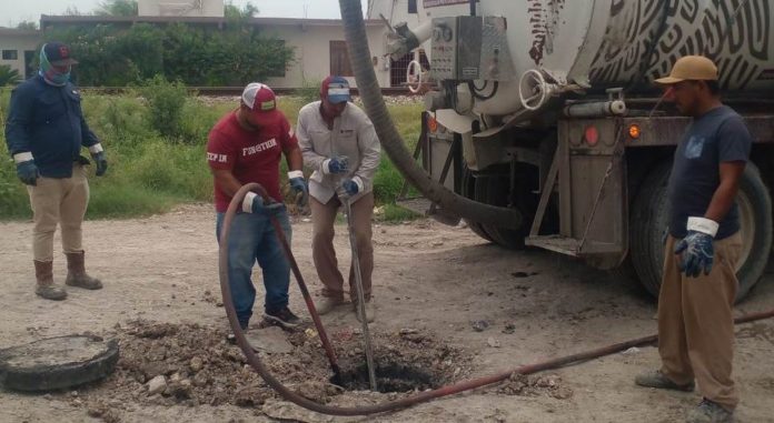 Reynosa, Tam.- Dando seguimiento a los reportes de los usuarios y atendiendo las indicaciones del Presidente Municipal, Carlos Peña Ortiz, la Comisión Municipal de Agua Potable y Alcantarillado de Reynosa llevó a cabo el desazolve de drenaje sanitario en varios sectores de la ciudad.