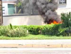 Al arribar a ese área acordonaron el área para sofocar las llamas delo vehículo, y asegurarse que no existiera riesgo alguno en el lugar los daños fueron materiales en la unidad que dejo pérdidas totales.