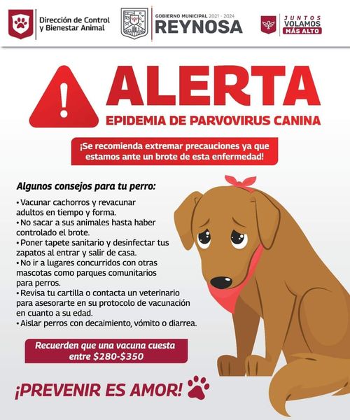 El Gobierno del Presidente Carlos Peña Ortiz alerta a la población que tenga perros de compañía a tomar medidas preventivas, ante una epidemia de parvovirus canina que se presenta en esta ciudad.