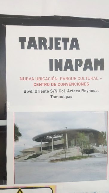 Ahora las oficinas del INAPAM, estarán ubicadas en el Centro de Convenciones de Reynosa, en las instalaciones del parque Cultural de Reynosa, que está ubicado sobre el libramiento Oriente, a un costado de la colonia Azteca,